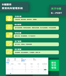 平臺介紹:為教育行政主管部門提供針對民辦教育機構全生命周期監管的建設方案,對民辦教育機構的辦學目標、師資建設、教學質量、服務評價、誠信經營等進行督導評估及學費監管。